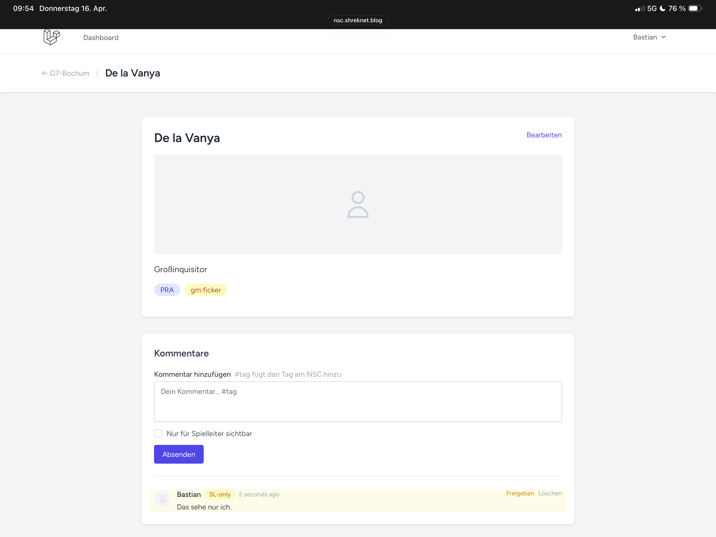Klicke ich nach dem Suchen auf einen NSC, dann kann ich auch hier kommentieren. Zusätzlich dazu kann ich Tags verwalten, eine globale Beschreibung ändern und ein NSC Bild hochladen.
